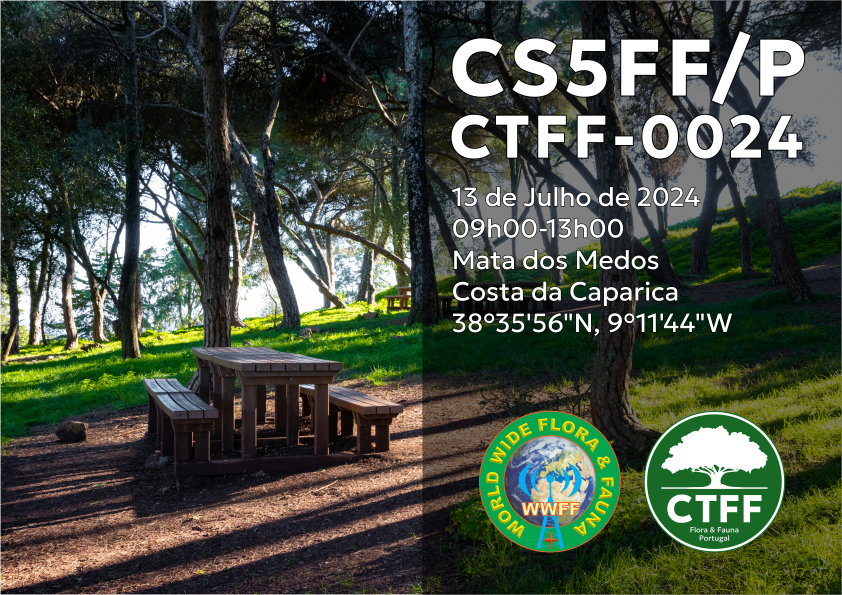 Em jeito de celebração atrasada da chegada do Verão, a equipa de gestão CTFF convida todos os interessados para uma manhã de rádio na natureza. No próximo dia 13 de Julho, sábado, entre as 09h00 e as 13h00 estaremos na Mata dos Medos, perto da Costa da Caparica, com uma estação montada com o indicativo CS5FF/P - uma oferta da ARRLx.